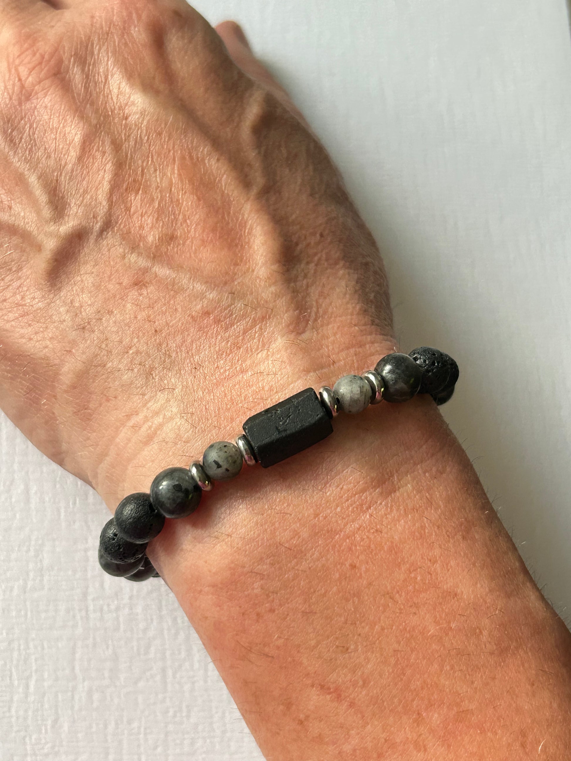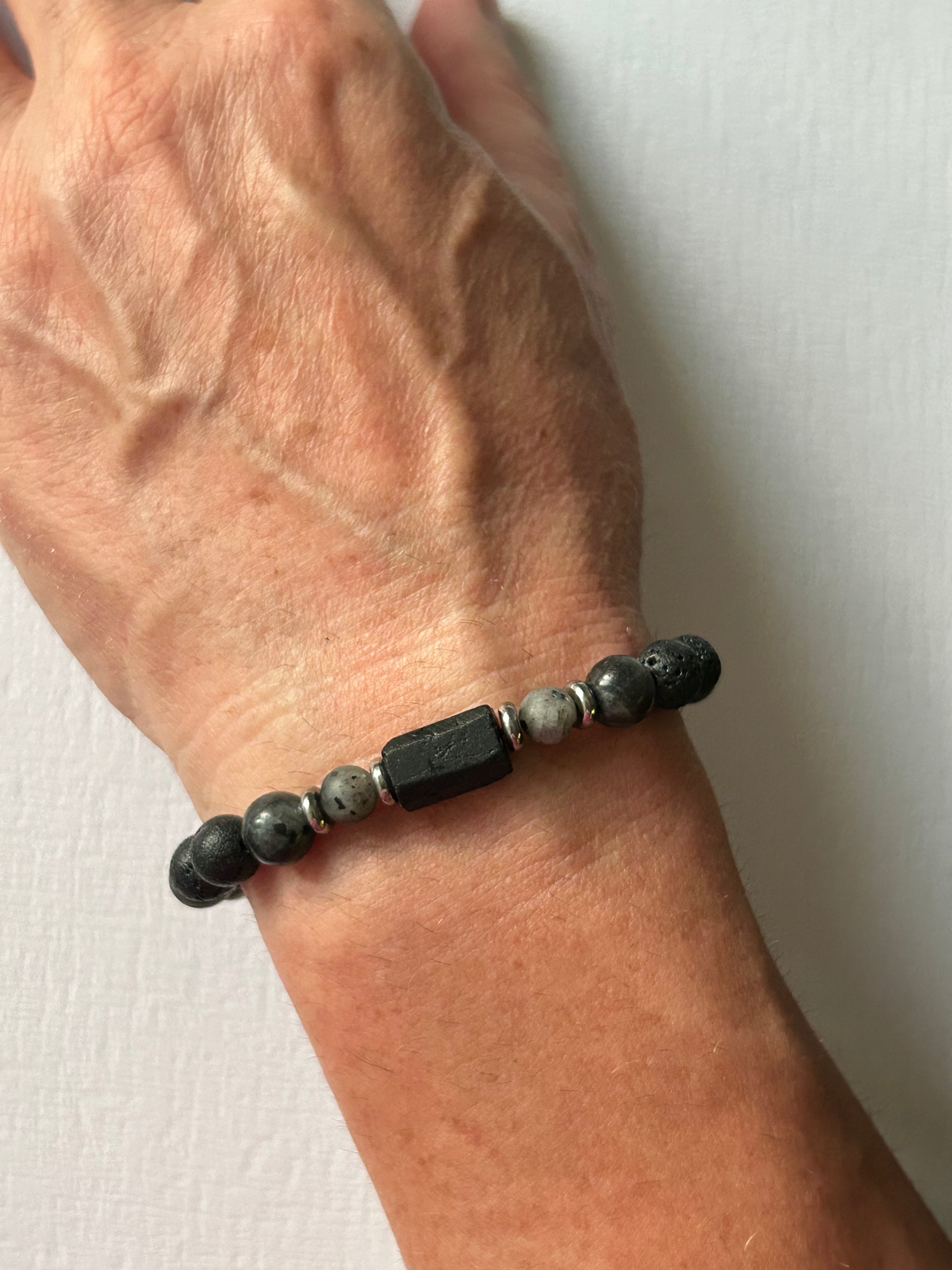 Ręcznie wykonana męska bransoletka z kamieni naturalnych.