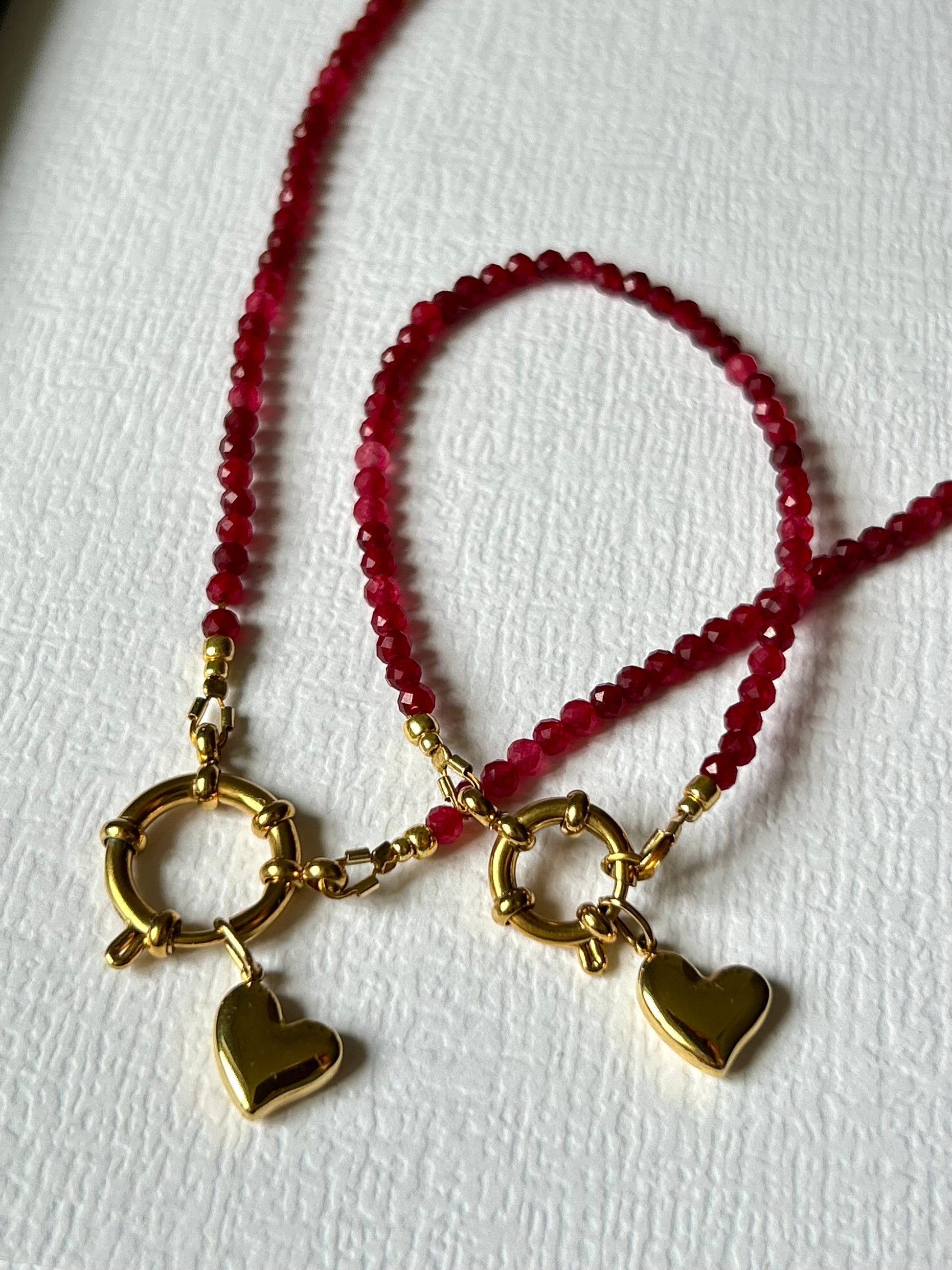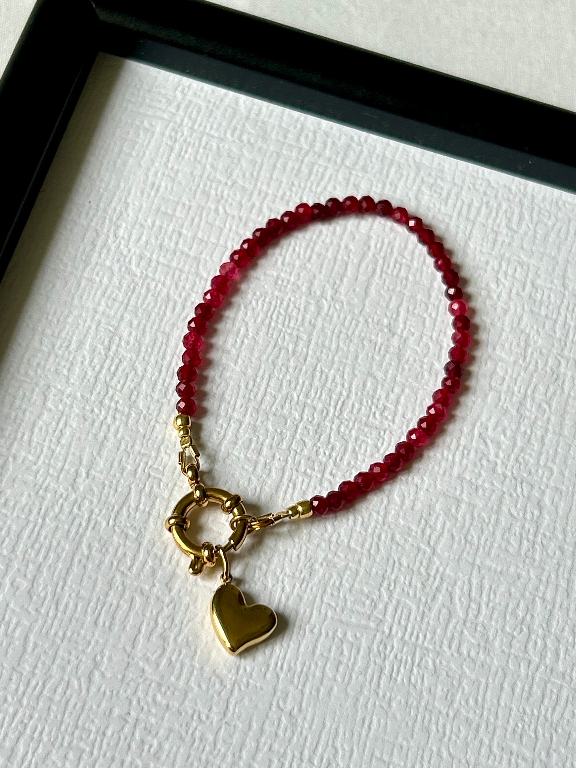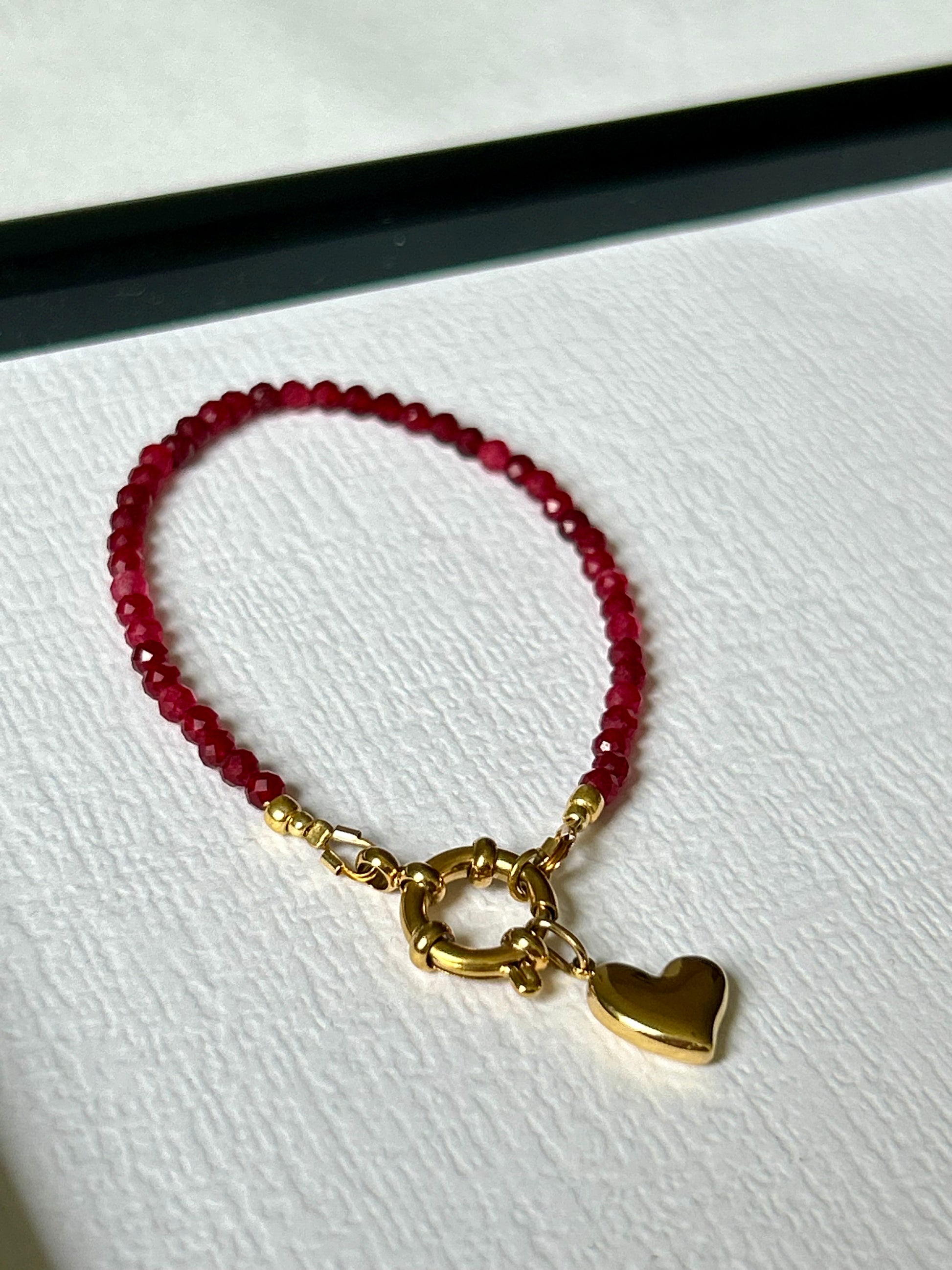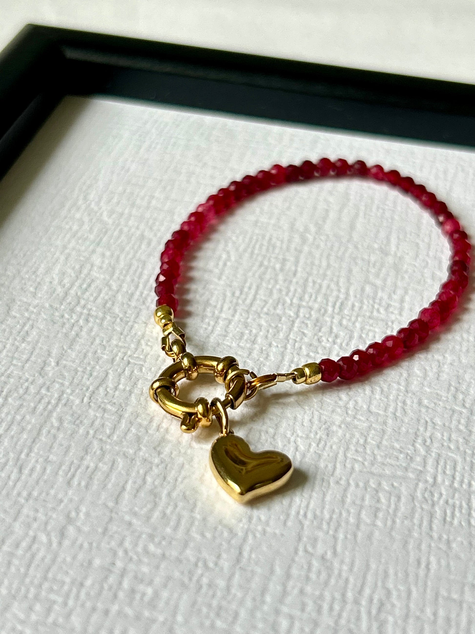Ręcznie wykonana bransoletka z kamieni szlachetnych z zawieszką serce