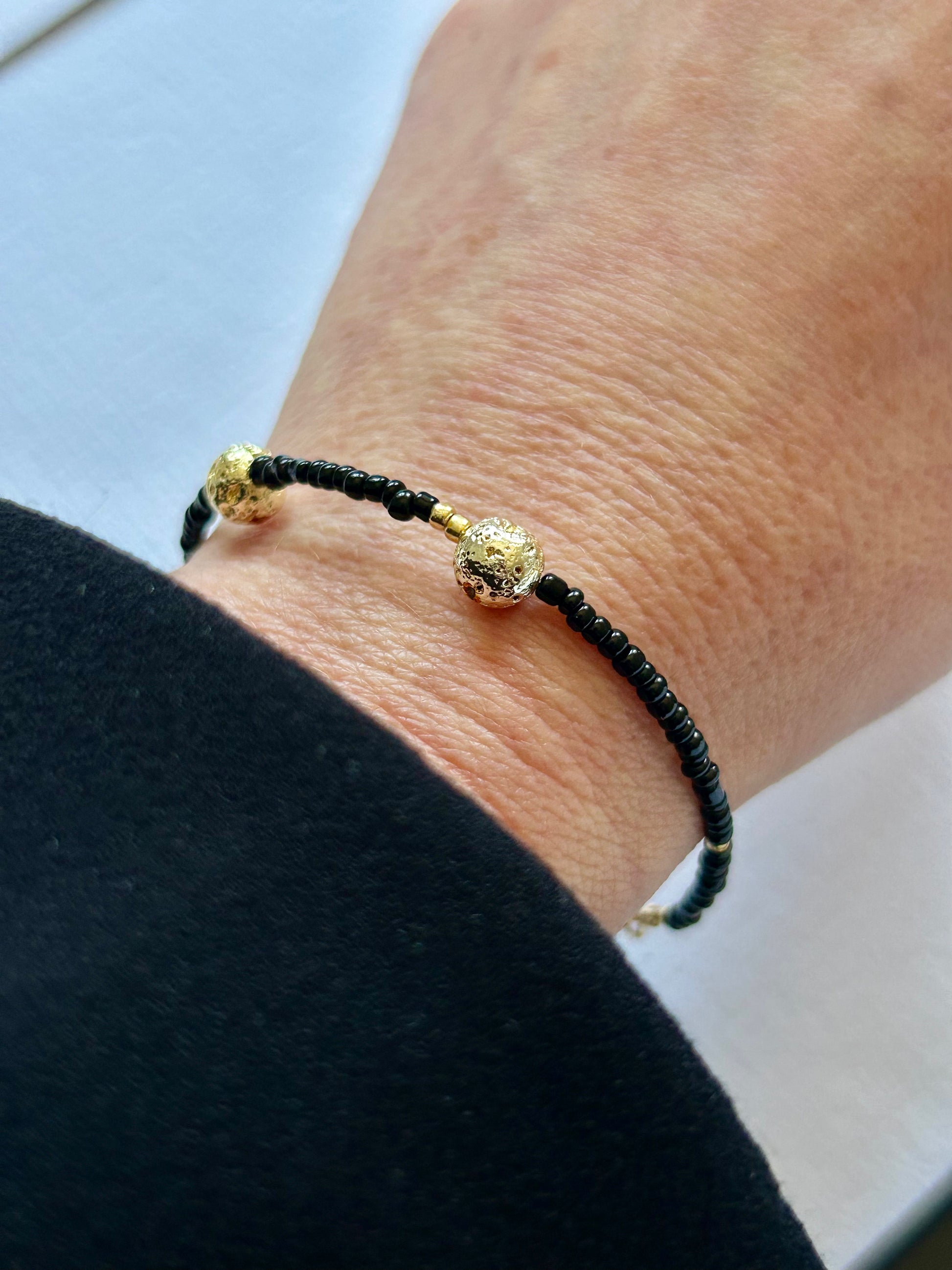 Toho - czarne / złote koraliki szklane.