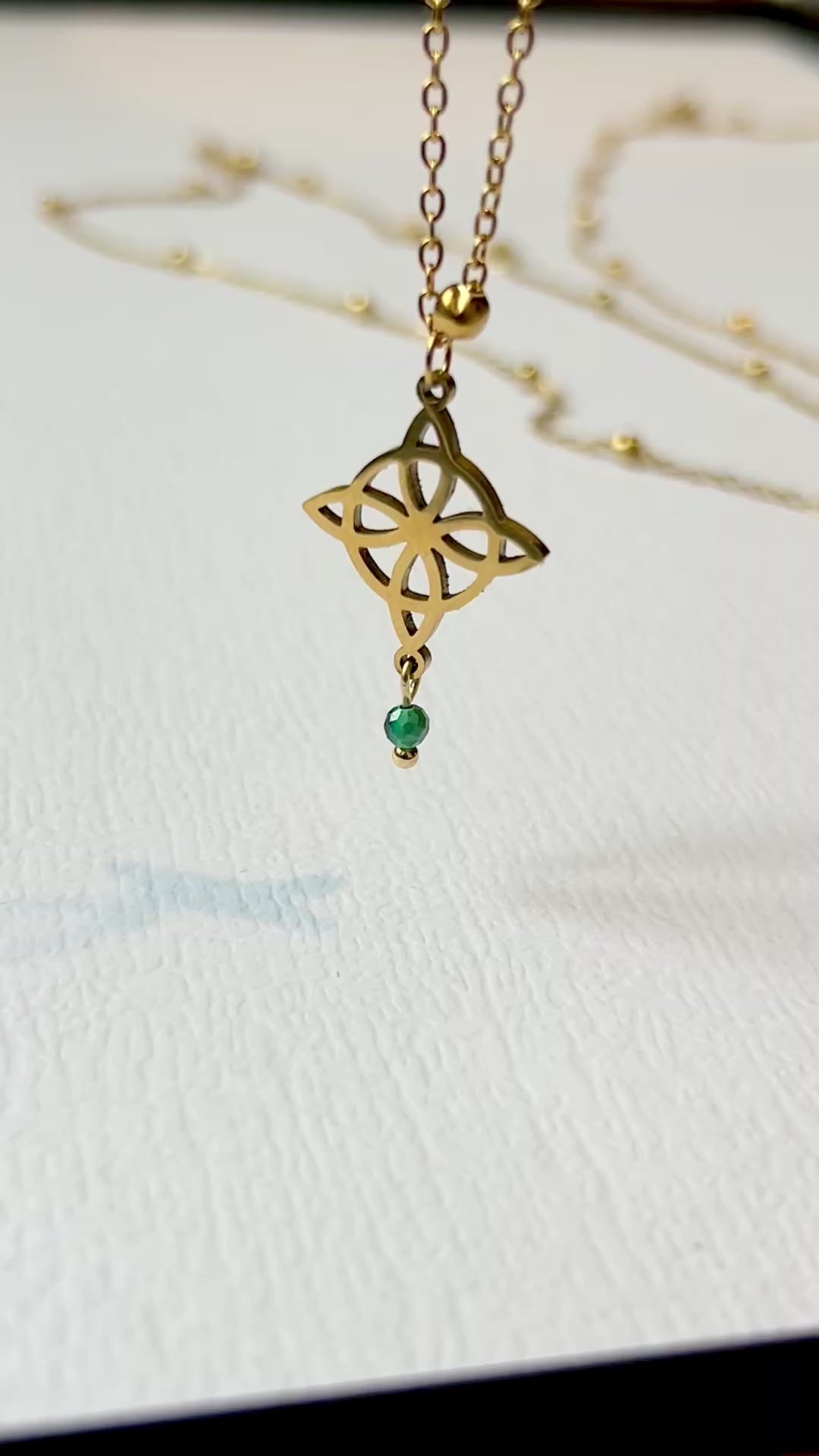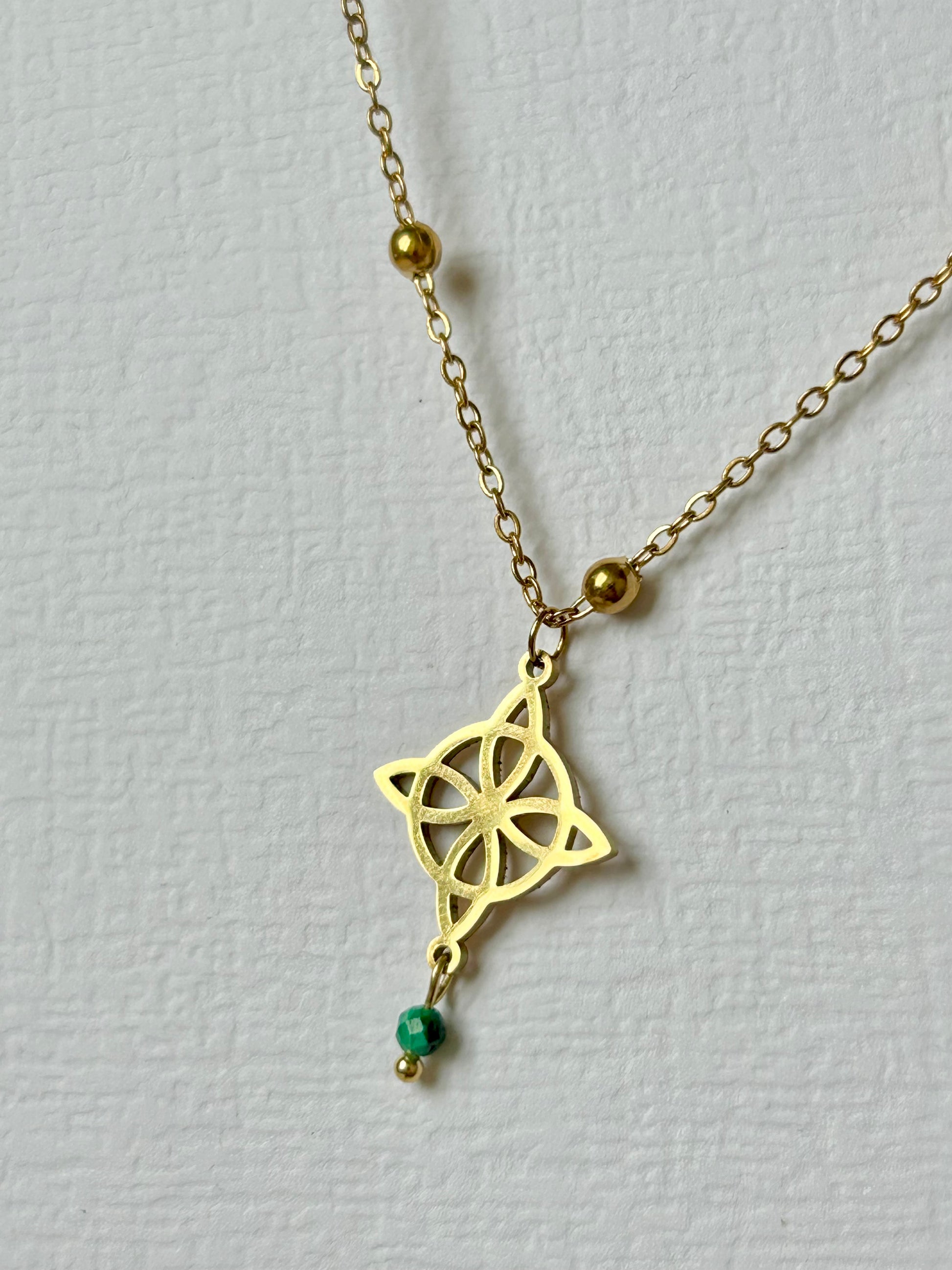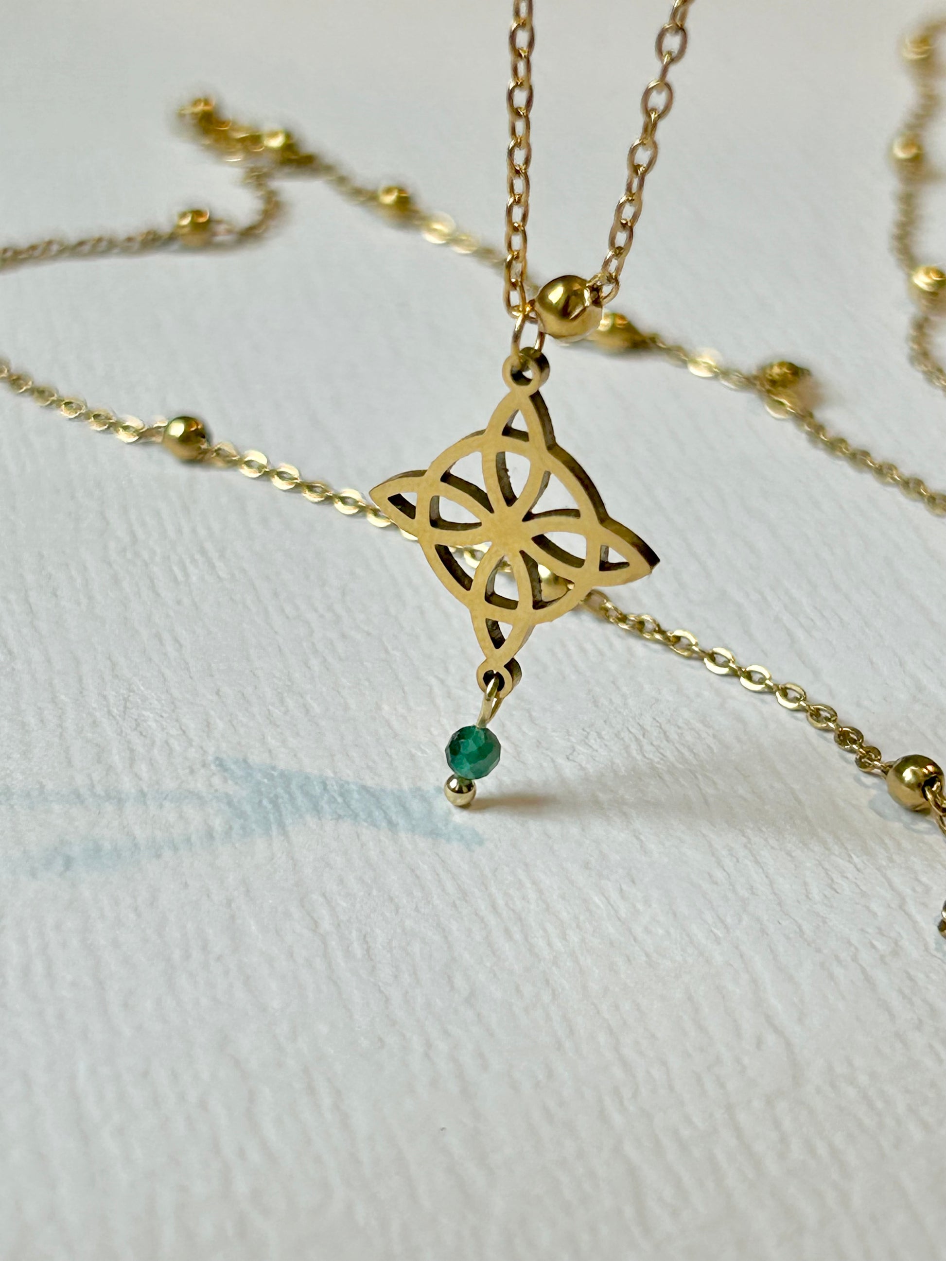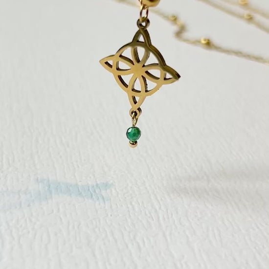 Niezwykły naszyjnik USUBI z węzłem czarownic i kamieniem naturalnym - Malachit