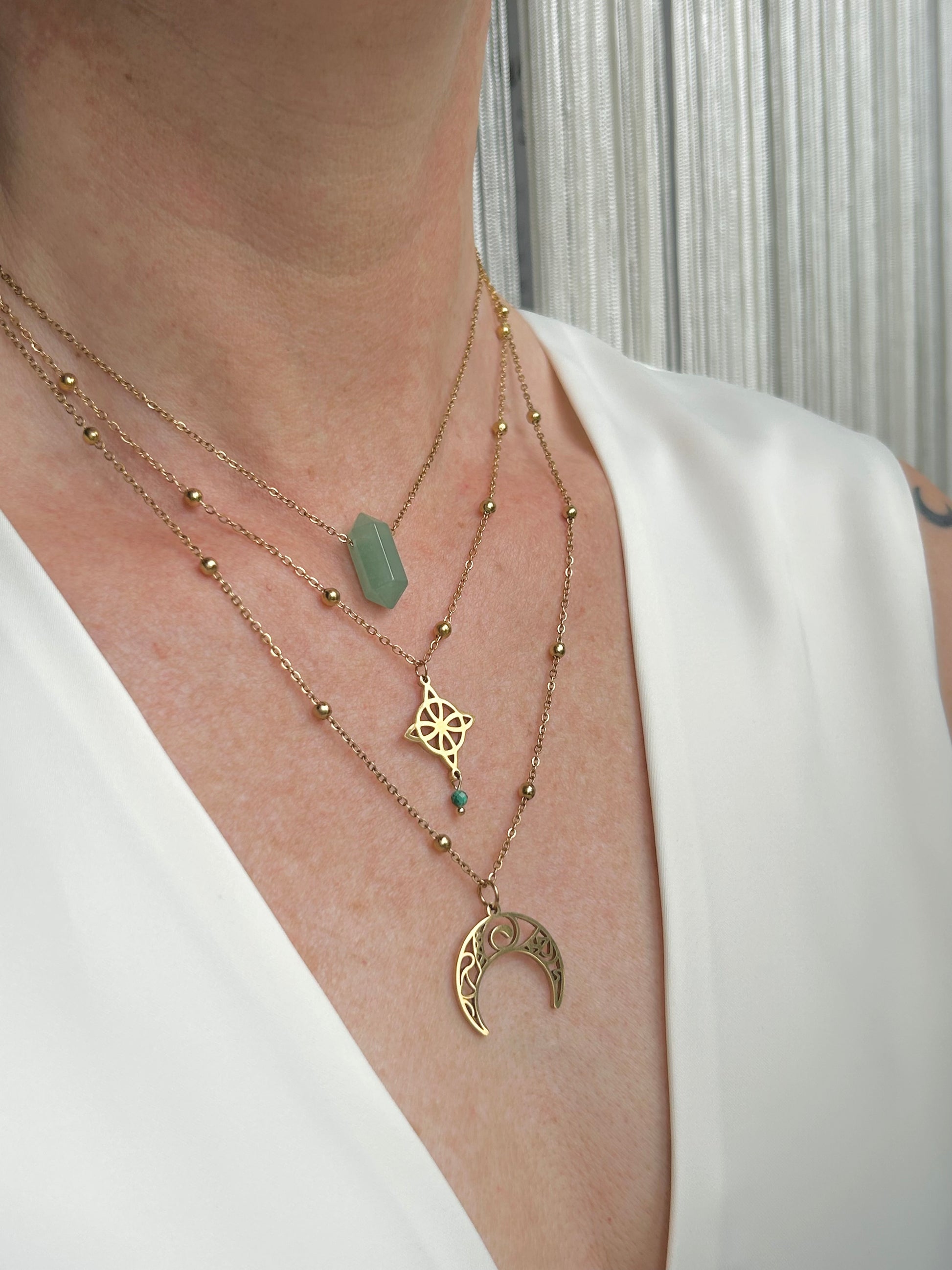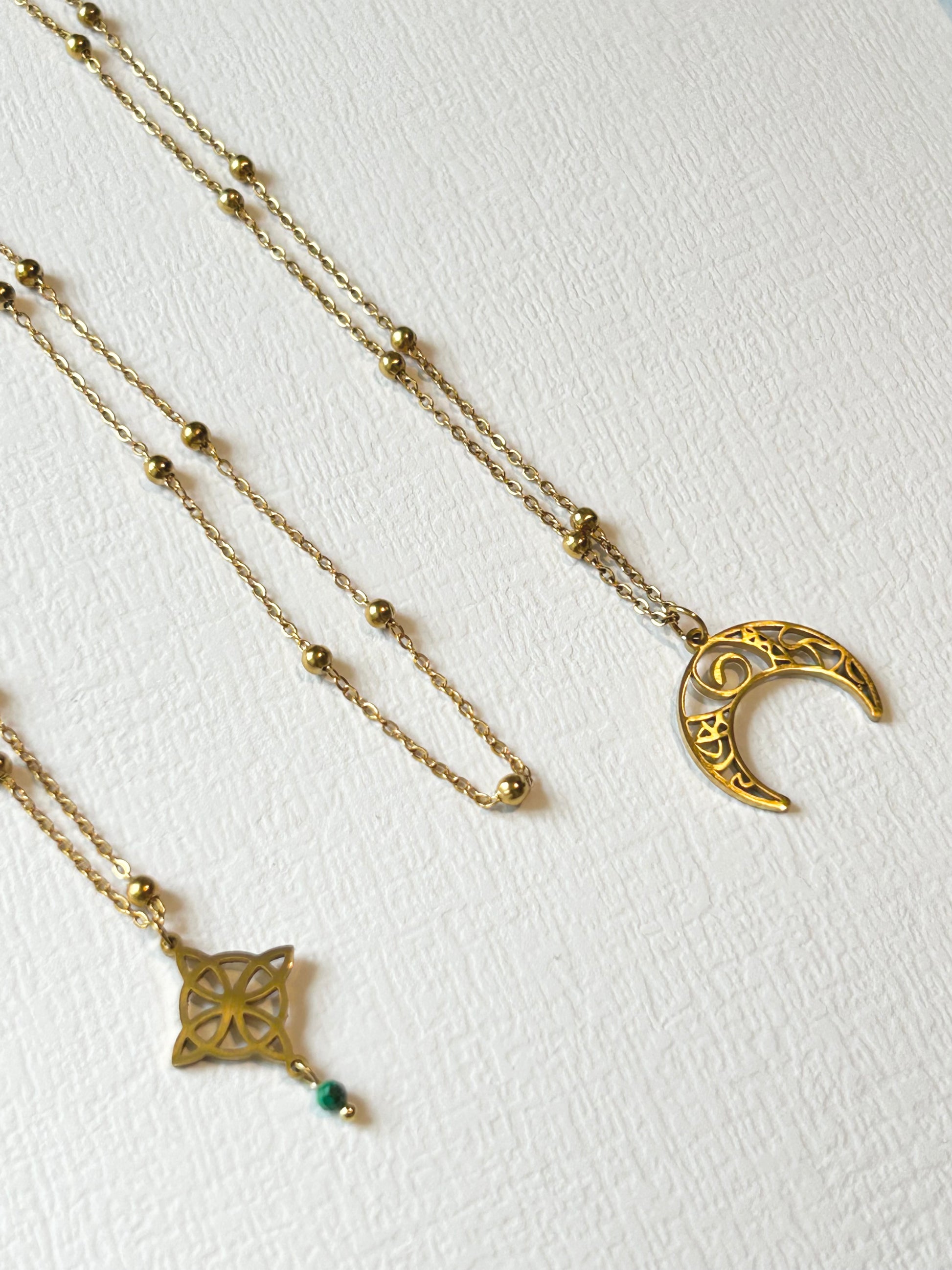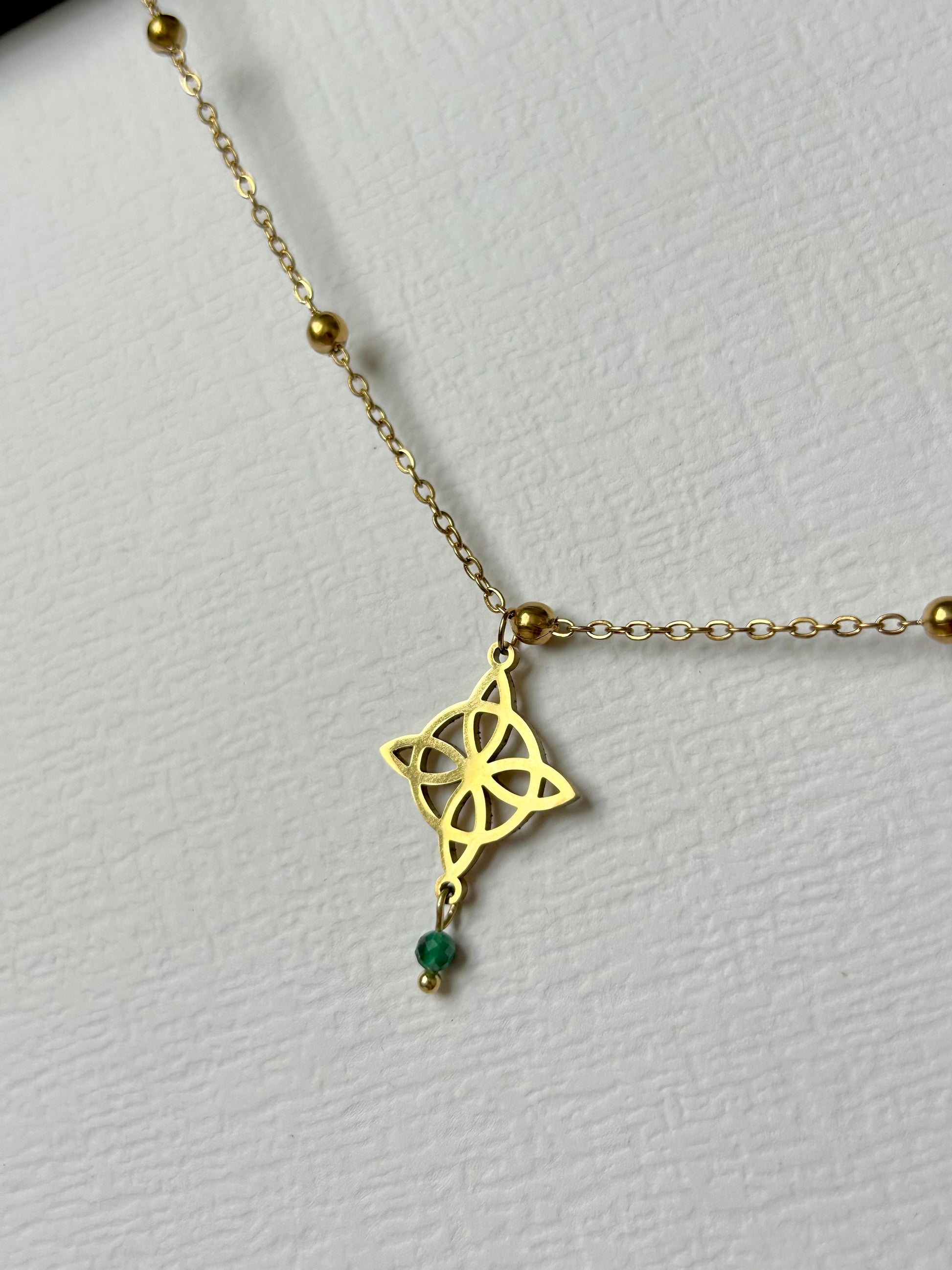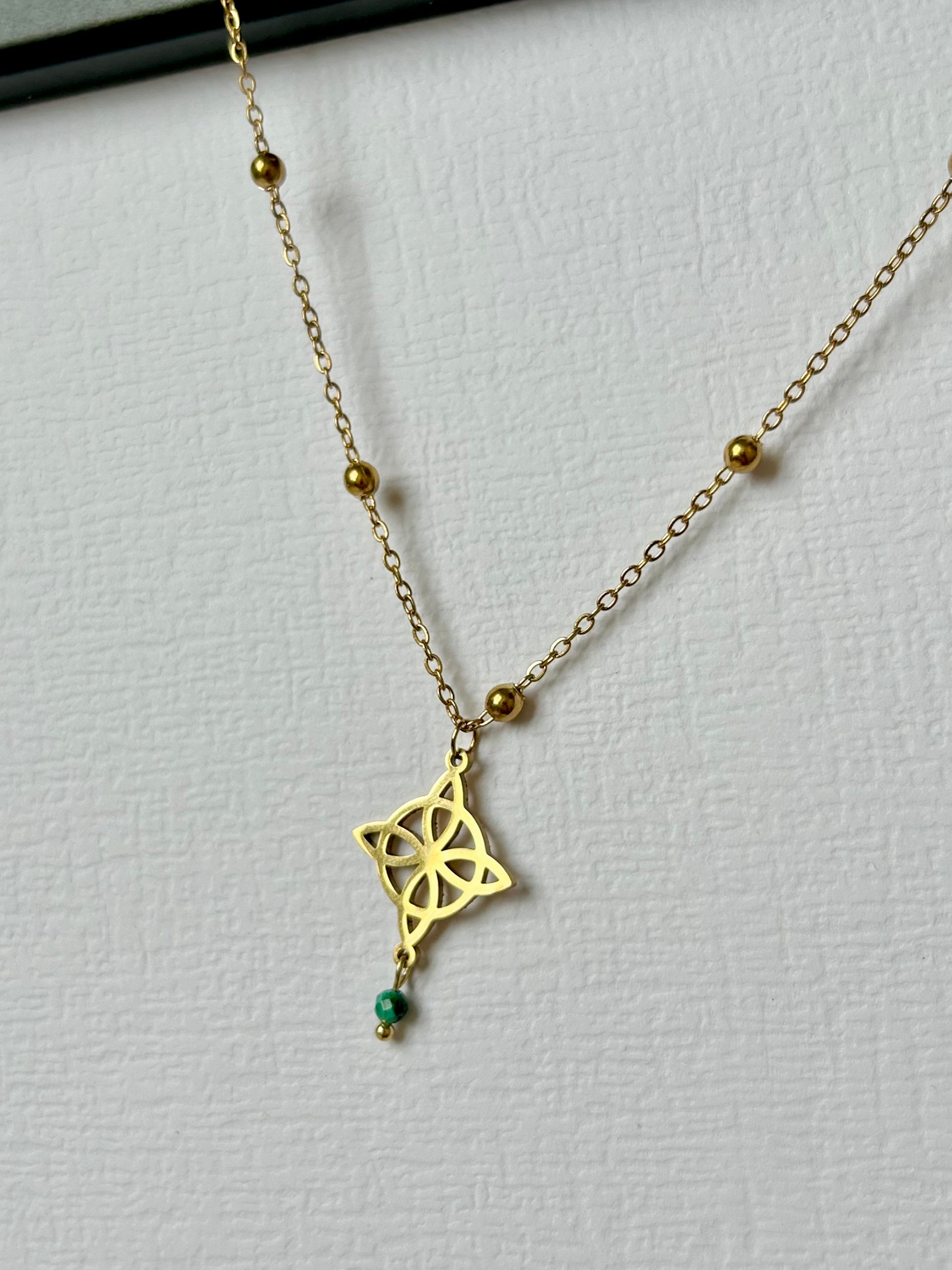 Niezwykły naszyjnik USUBI z węzłem czarownic i kamieniem naturalnym - Malachit