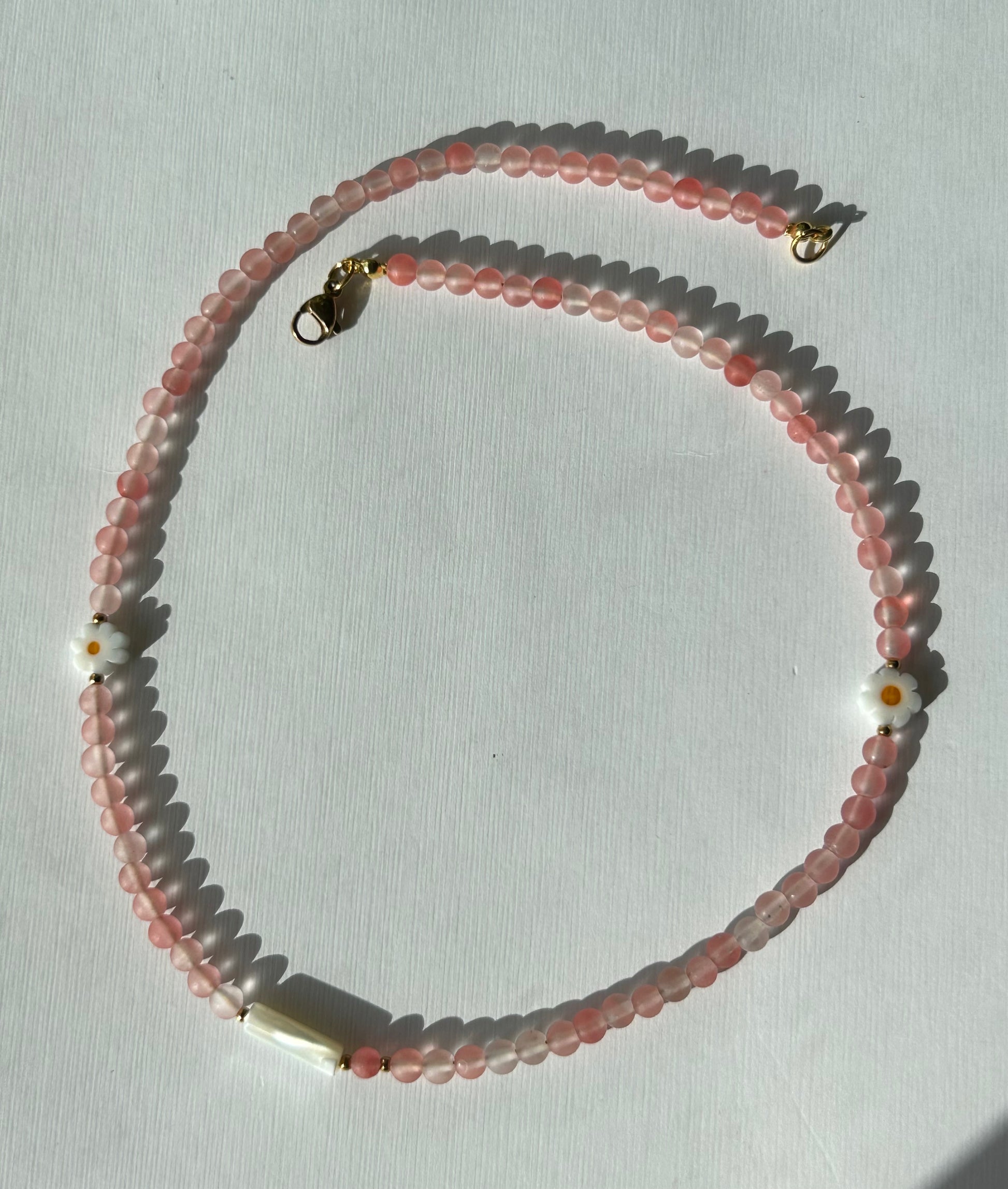 Długość naszyjnika 40 cm. + 2 cm. dodatkowa przedłużka, co daje możliwość dopasowania naszyjnika do sylwetki.