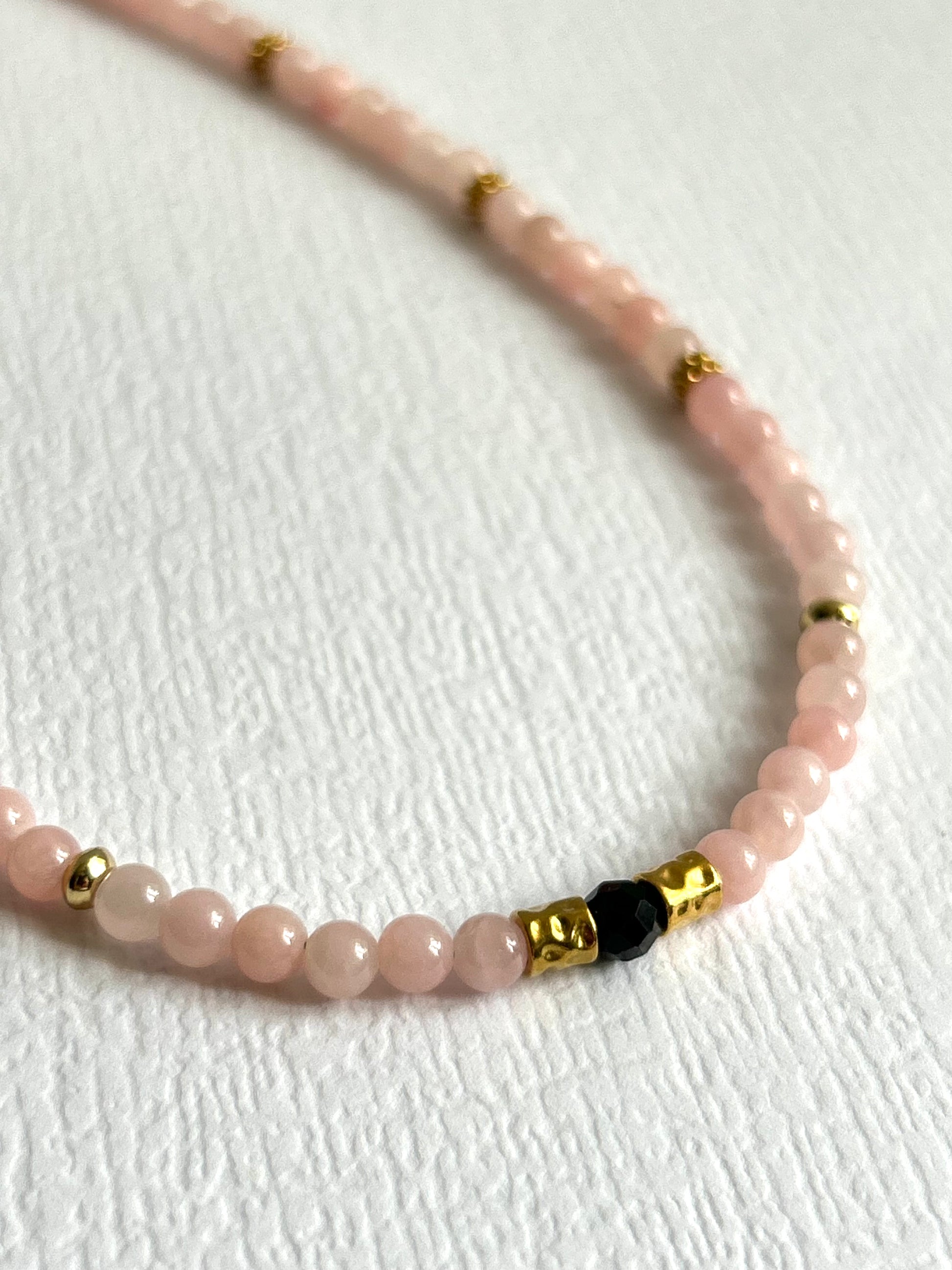 Kwarc Różowy - ma energię podnoszącą samopoczucie i dodającą radość, dodatkowo opal różowy ułatwia wyzwolenie się z poczucia winy, wstydu i zahamowań.