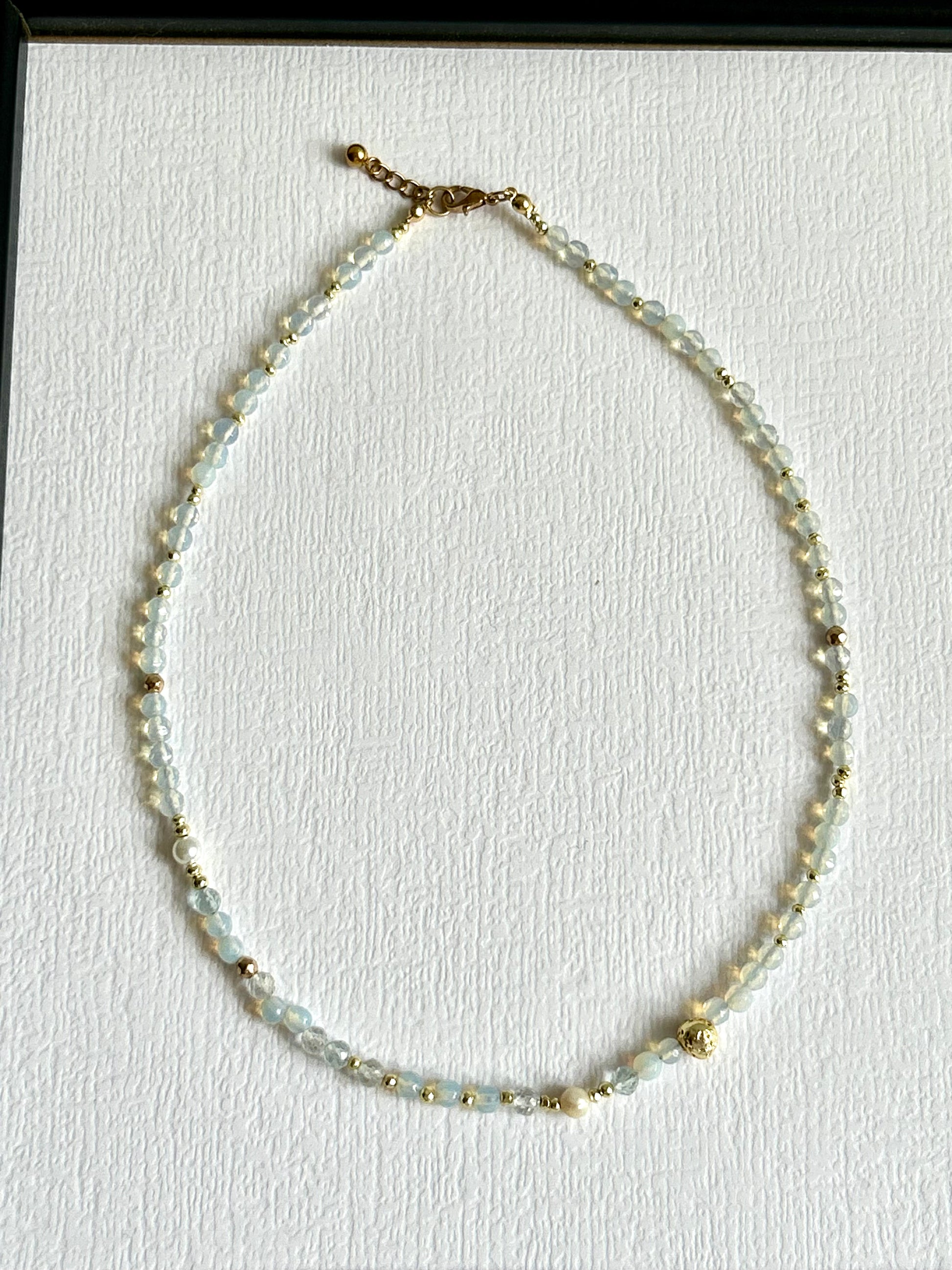 Długość naszyjnika ok 39 cm. + 2 cm. dodatkowa przedłużka, co daje możliwość dopasowania naszyjnika do sylwetki.