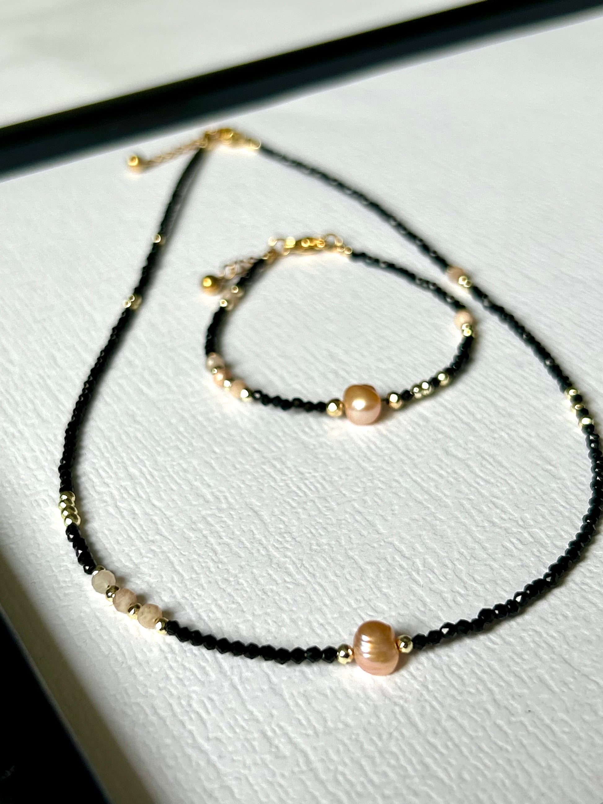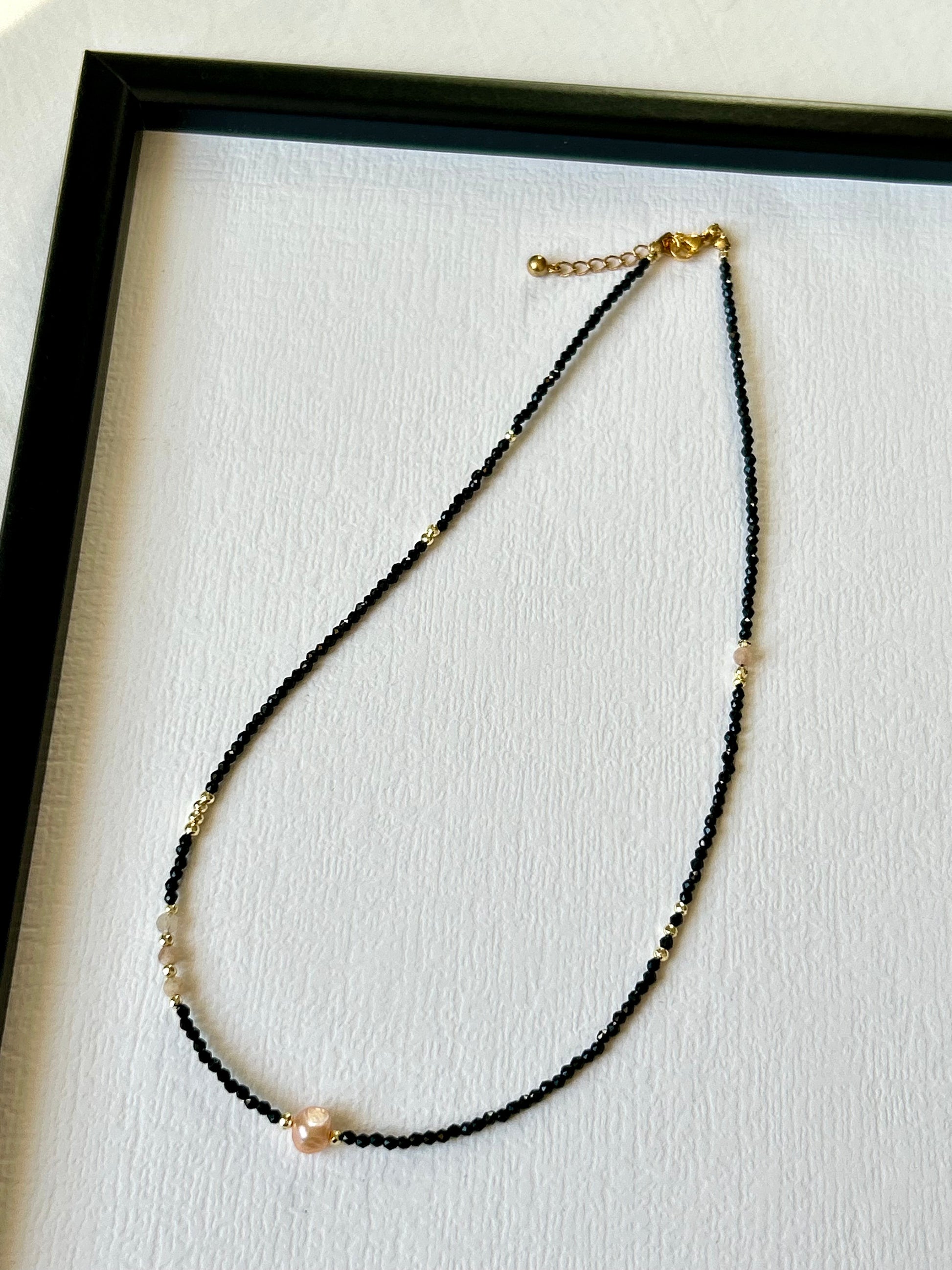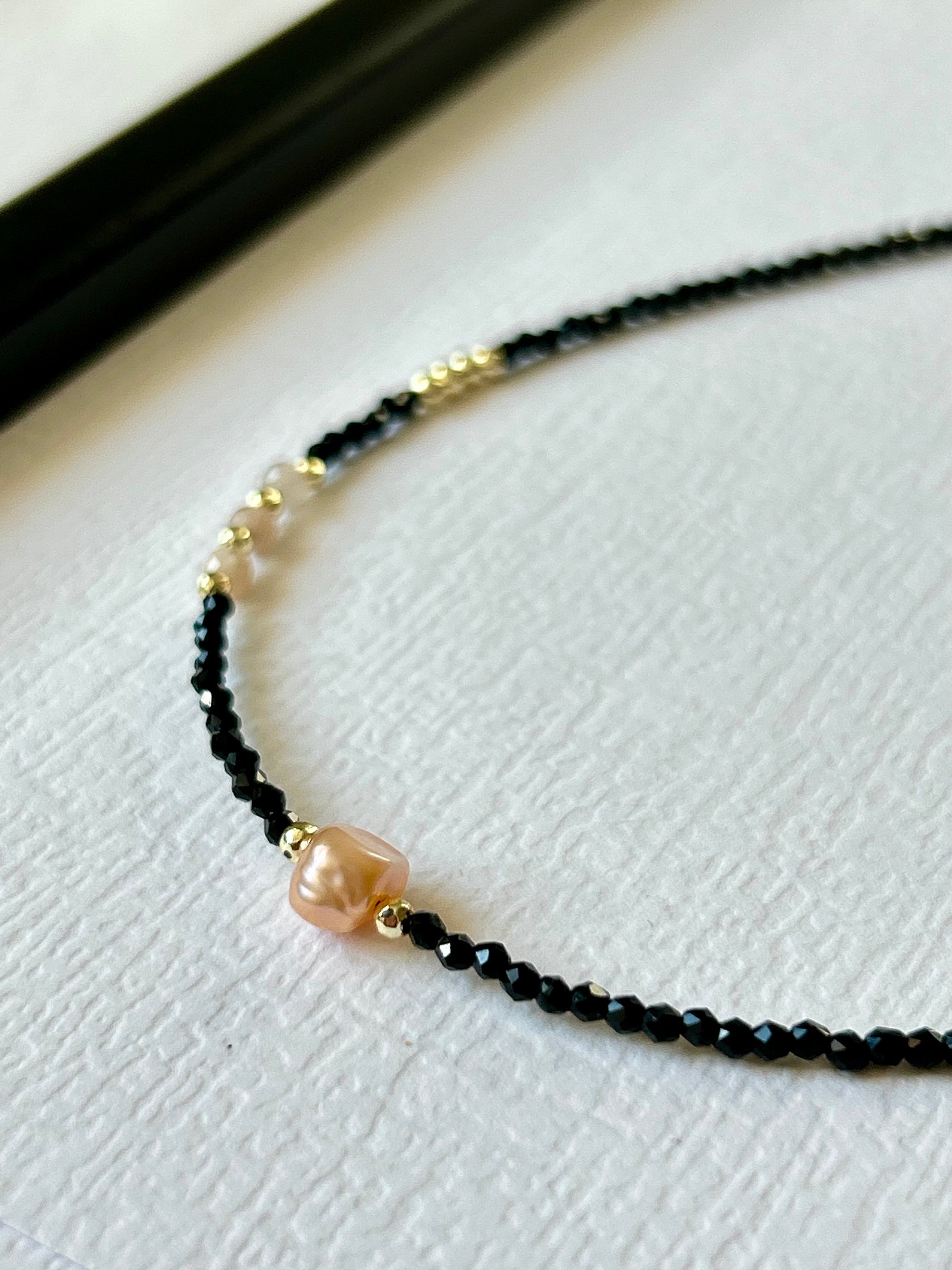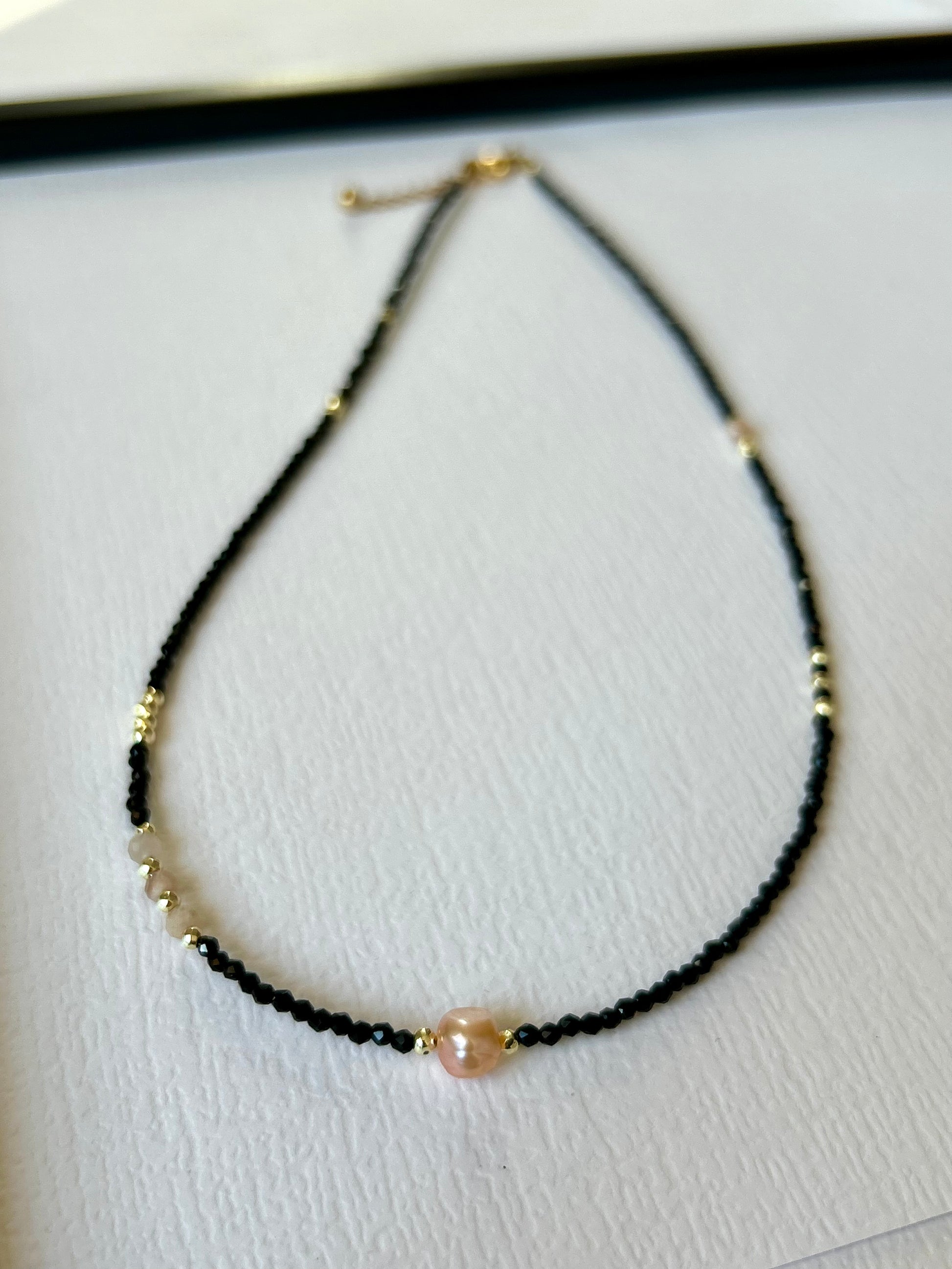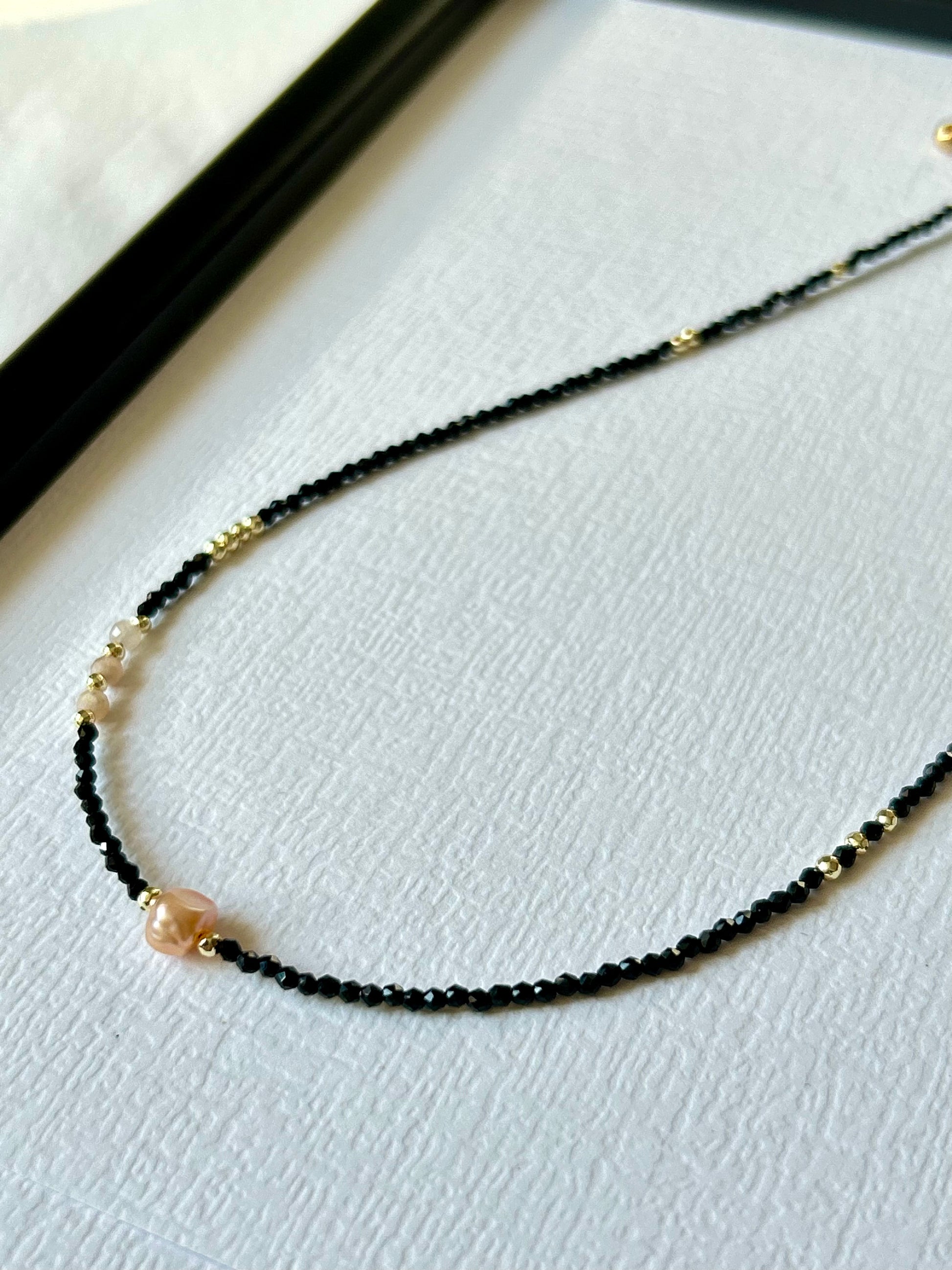 Delikatny ręcznie wykonany naszyjnik / choker z kamieni naturalnych.