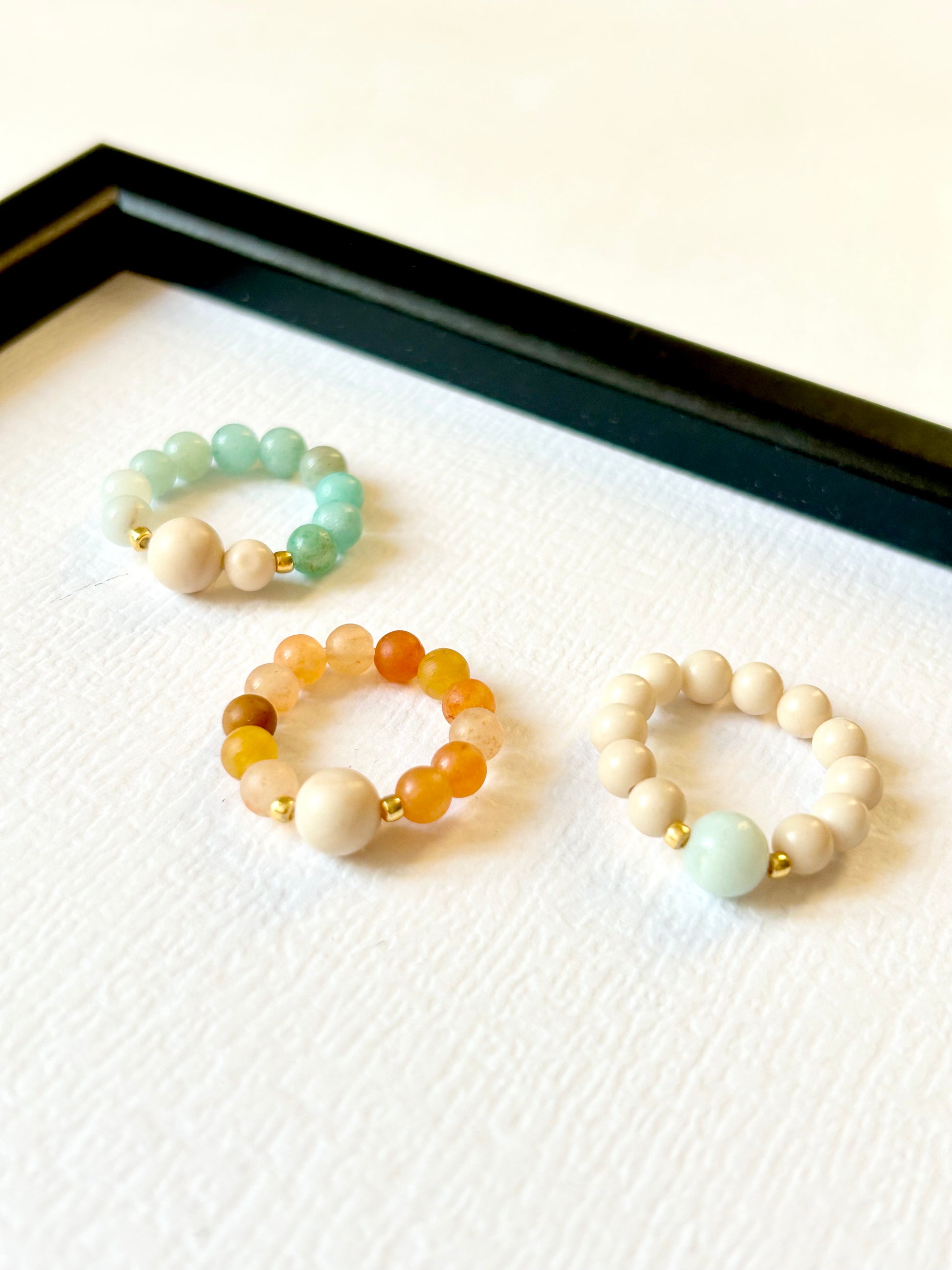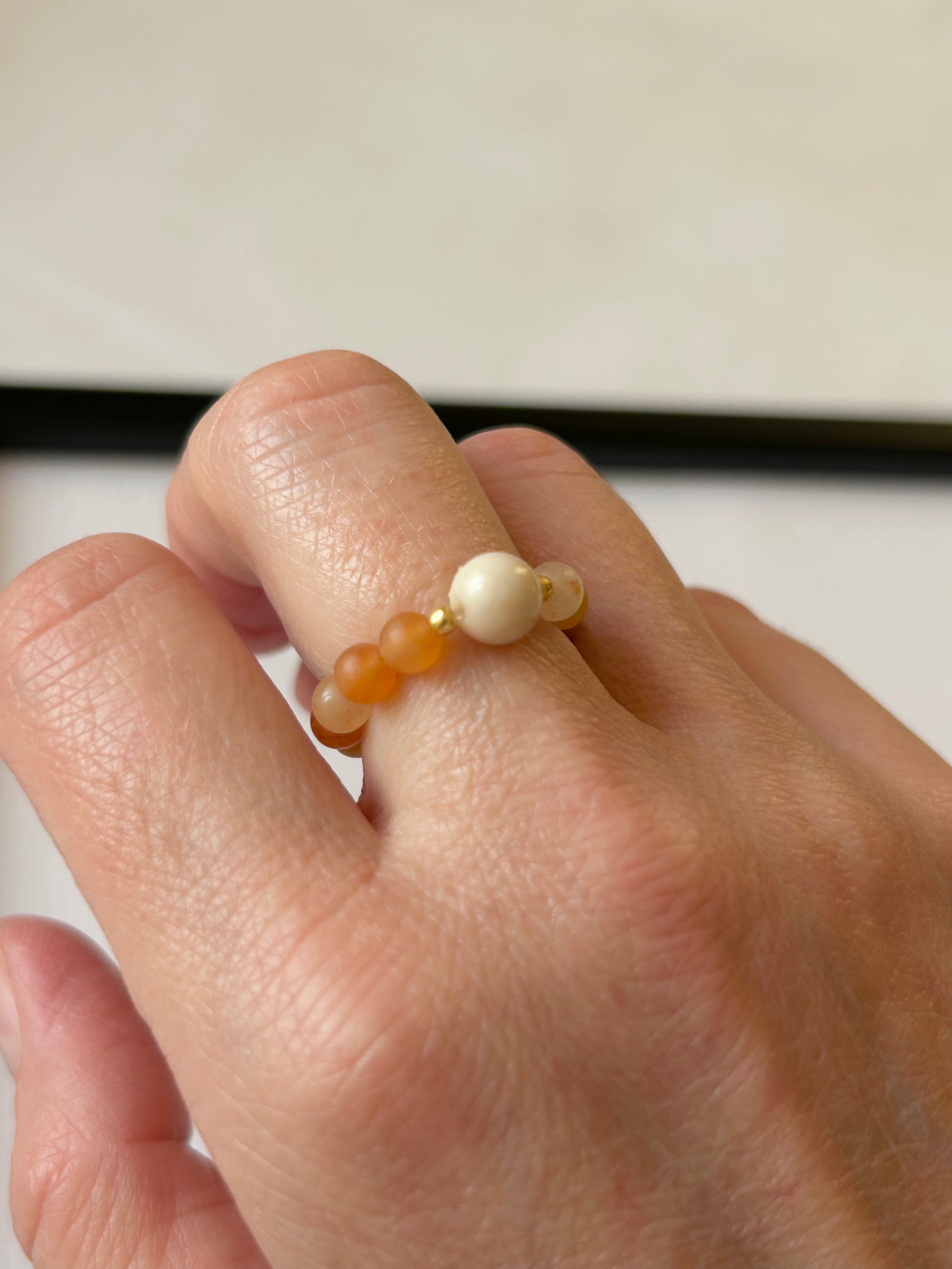 Ręcznie wykonany pierścionek z kamieni naturalnych.