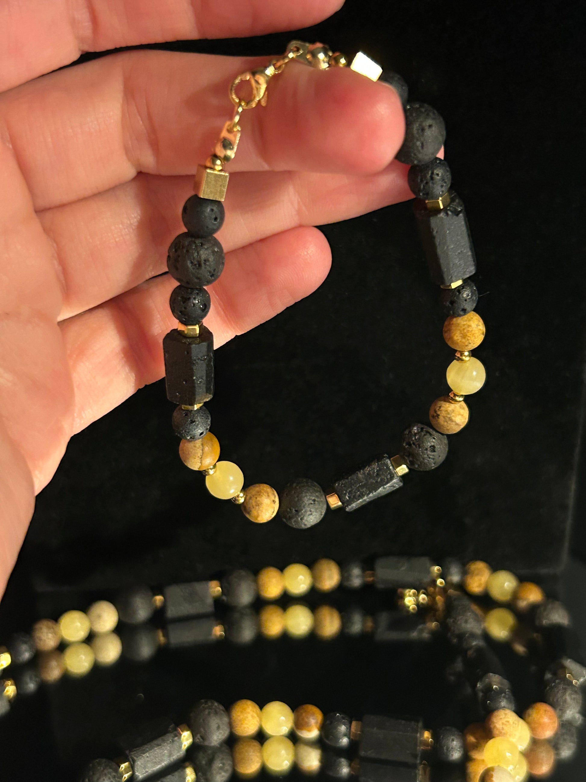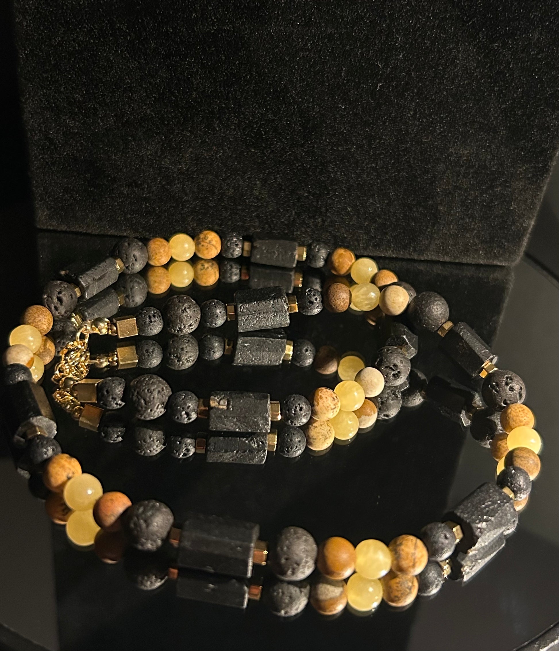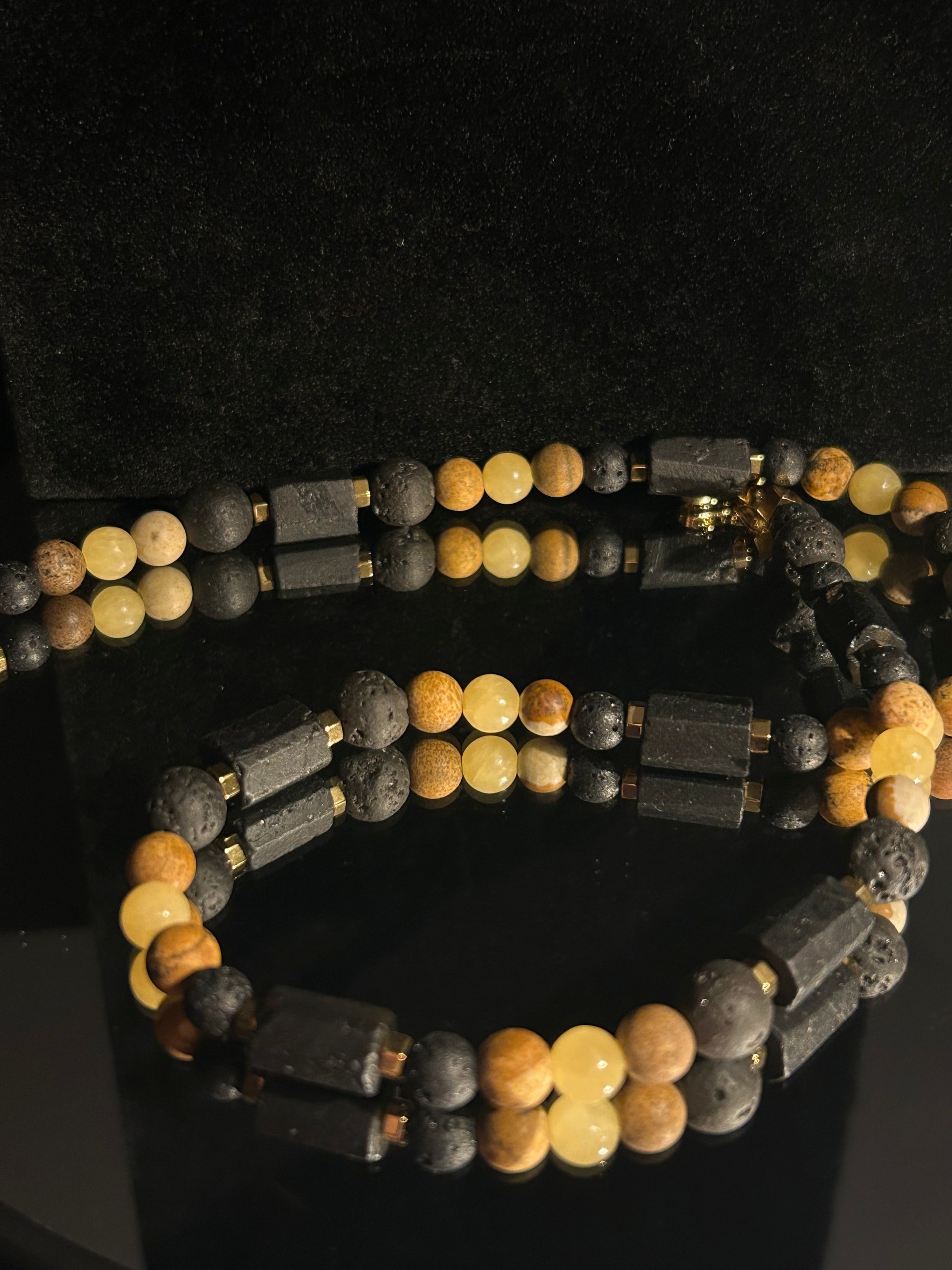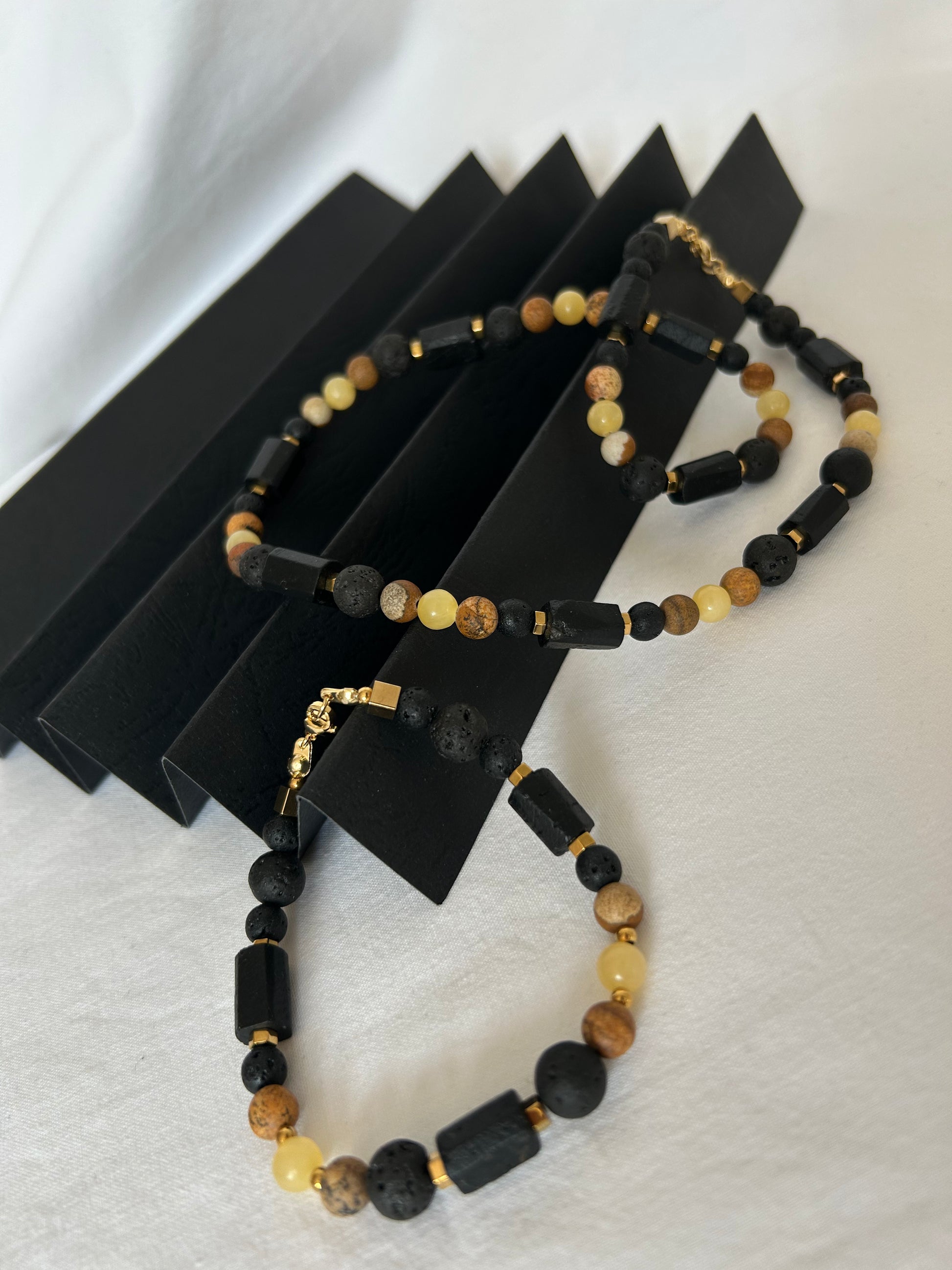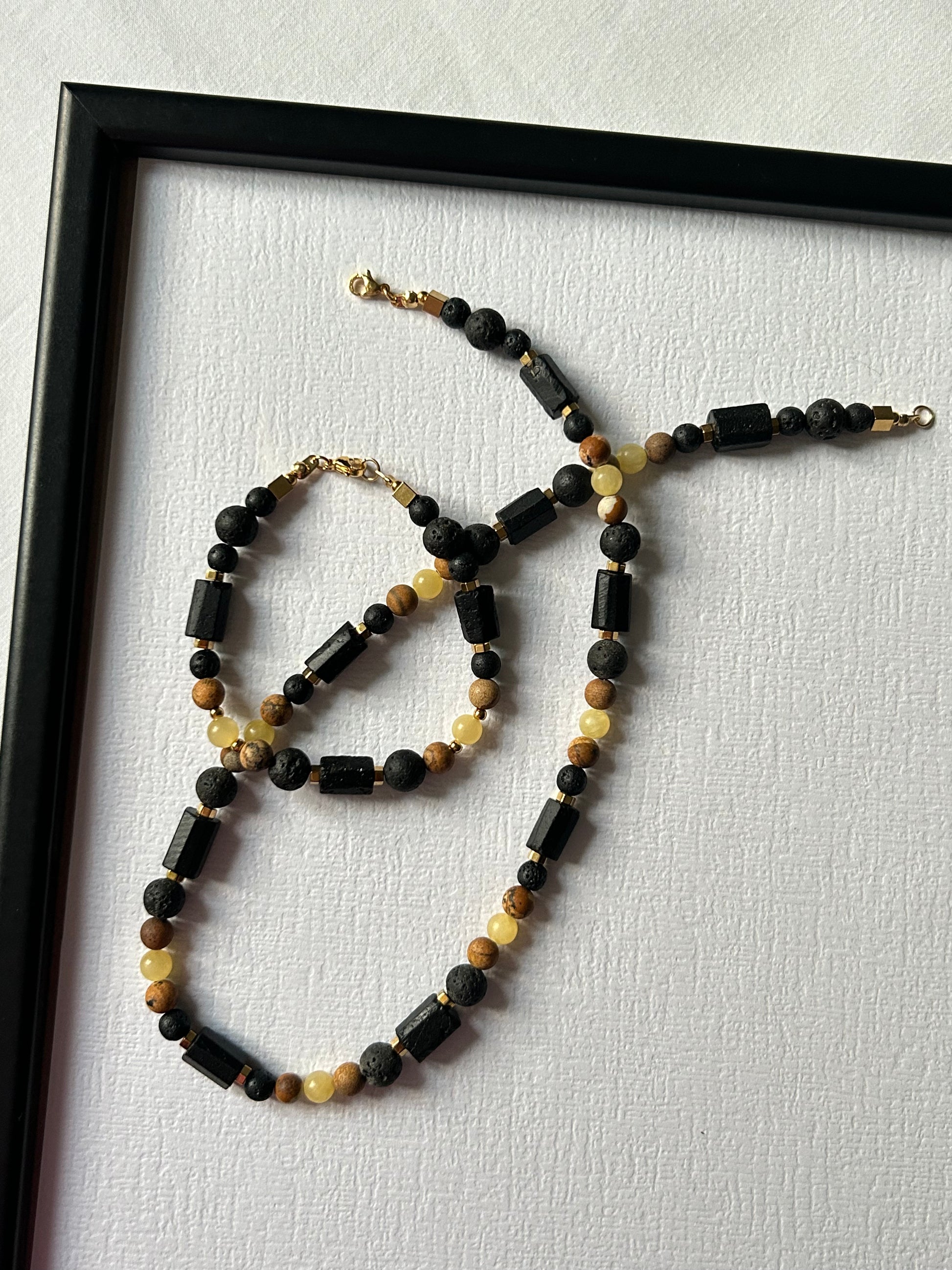 Ręcznie wykonany męski set z kamieni naturalnych.