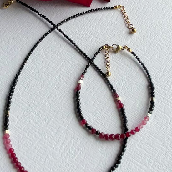 Spinel - zwany "iskrą", dodaje energii życiowej, wzmacnia witalność i pomaga w pokonywaniu trudności. Wspiera optymizm i wiarę w lepszą przyszłość.