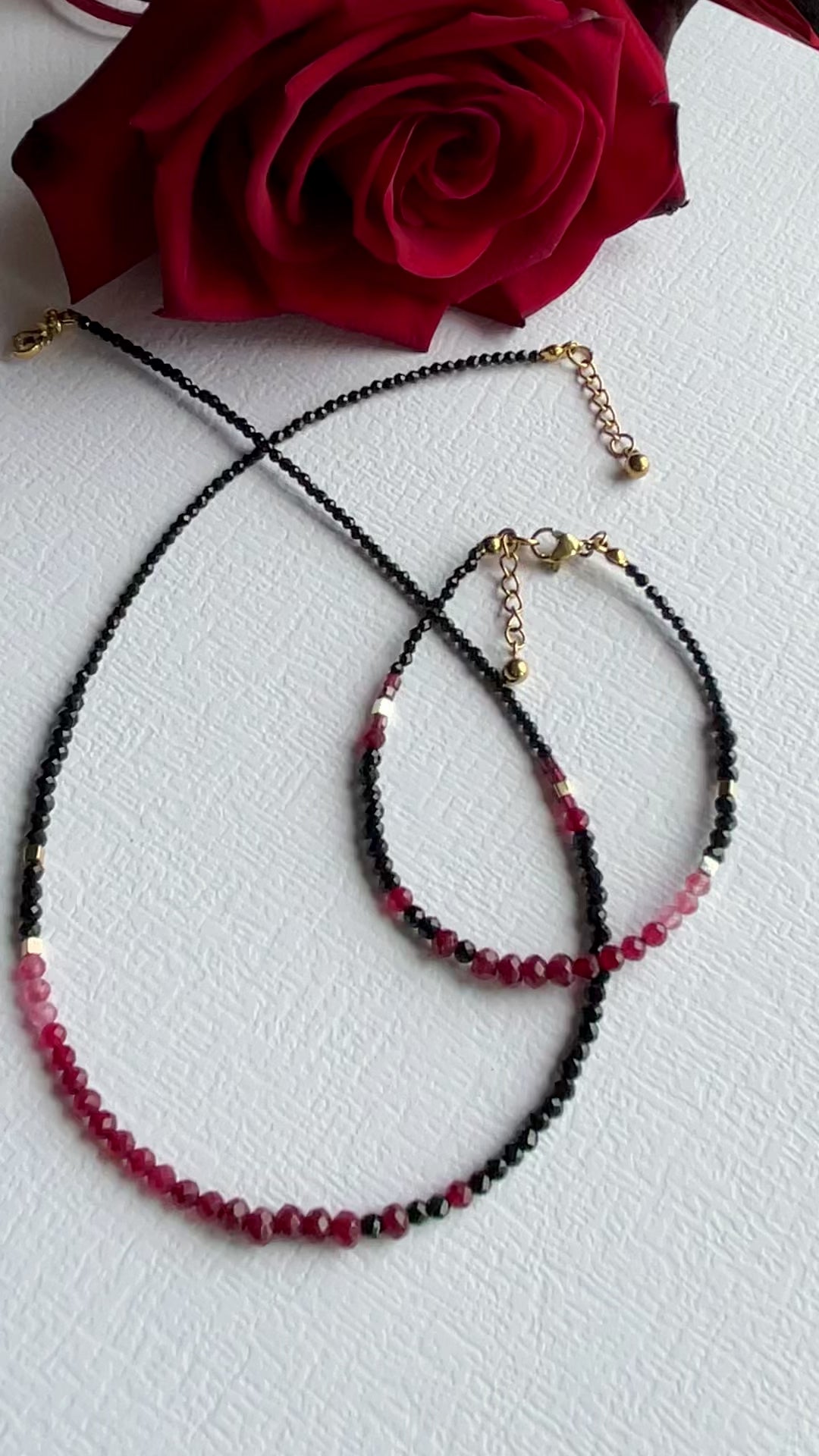 Ręcznie wykonany zestaw biżuterii z kamieni naturalnych.
