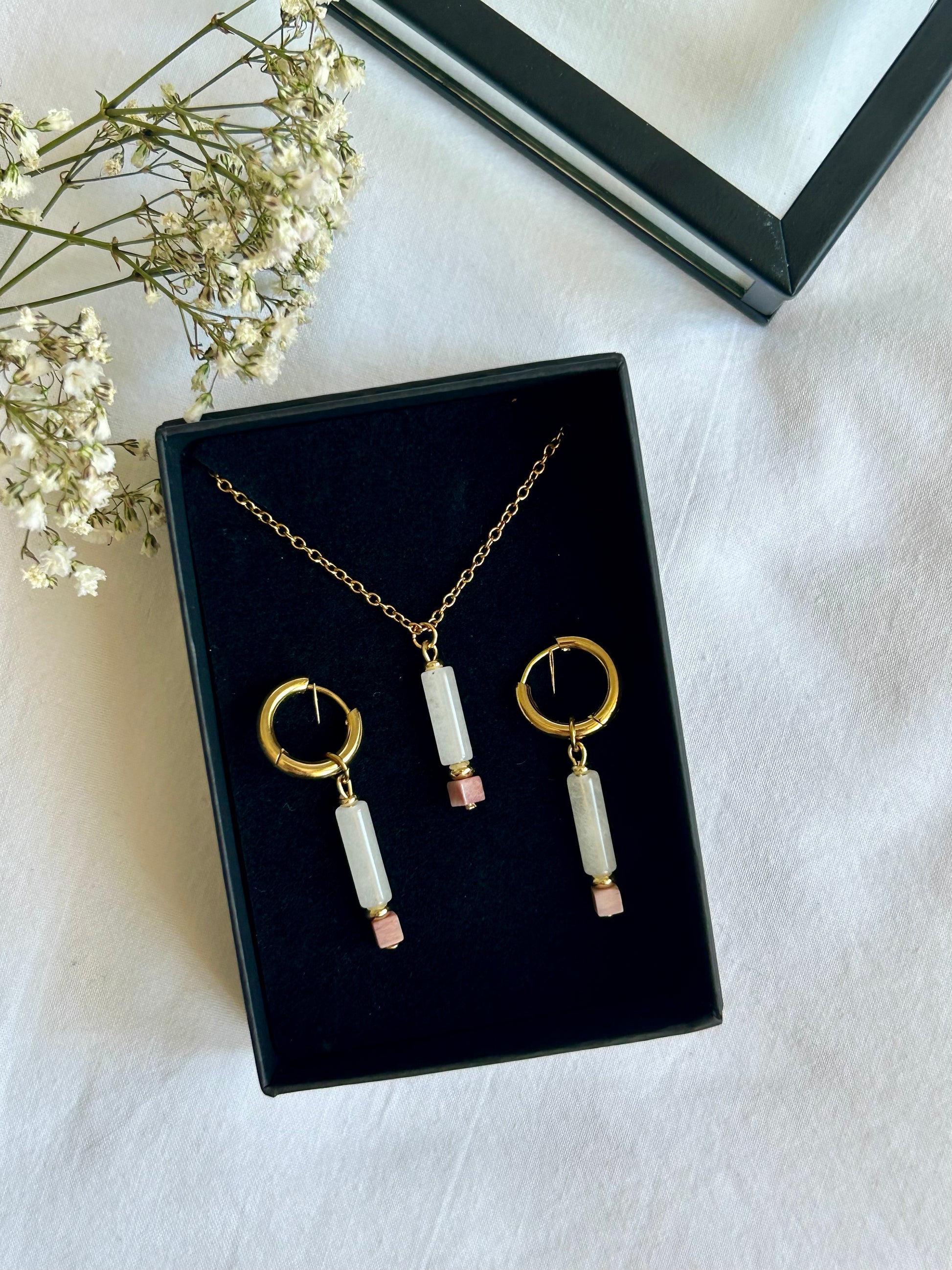 Ręcznie wykonany zestaw biżuterii z kamieni naturalnych.